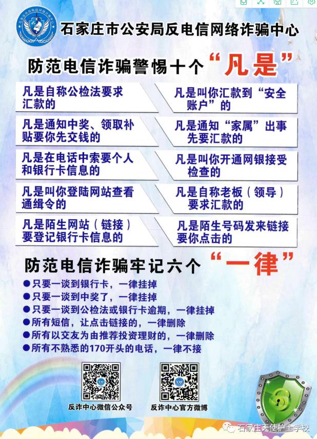 3、安全法制辦發(fā)表“反電信詐騙”宣傳推文,要讓更多的師生掌握防詐騙常識(shí),進(jìn)一步提升校園安全工作。